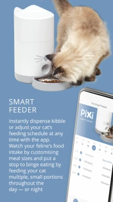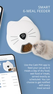 This free Catit® PIXI® mobile app can be used with the Catit® PIXI® Smart series: The PIXI® Smart Fountain, PIXI® Smart Feeder, PIXI® Smart 6-meal Feeder, PIXI® Smart Mouse Camera, and the PIXI® Vision Smart Feeder.