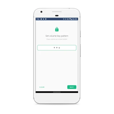 We use volume key pattern as the password. You can make any pattern using volume keys, like UP UP DOWN UP.