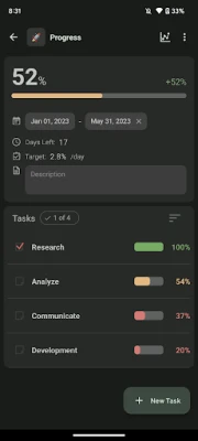 Also, by setting a deadline, the daily quota will be displayed, so you can easily manage the project until the deadline.