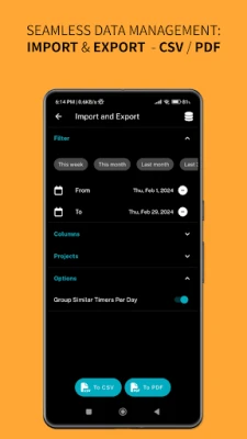 But Project Timer doesn't stop there. With built-in export functionality, you can easily export your data as a .csv file, filtered by timespans and projects, giving you full control over your time-tracking data. Plus, for users who want complete access to their data, Project Timer offers the option to export the app's database, ensuring that you always have access to your information.