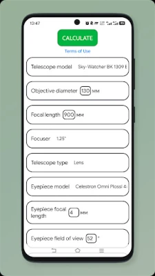 Simply enter the data of your telescope and eyepiece, and the application will instantly provide you with all the necessary parameters.