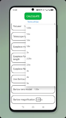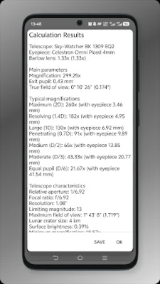 The application is suitable for calculating the parameters of various models of telescopes and eyepieces.